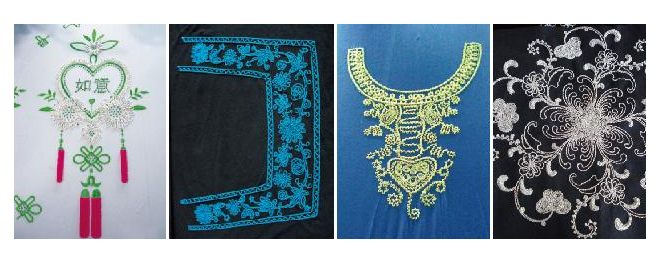 簡(jiǎn)易盤帶繡完全兼容普通盤帶繡的花樣,使客戶免去重新打版或者修改花樣的麻煩,方便客戶自由繡作,增加工作效率。