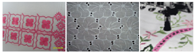 【雕孔繡】是借助雕孔刀或雕孔針等工具在繡花機上雕孔后進包邊刺繡,這樣做出的繡孔比較漂亮。【獵邊繡】其實與一般的平繡無異。只是在完成繡品的加工后,由后道的雜工,用電烙鐵在需要留孔的地方燙割,達到同雕孔差不多的效果,獵邊繡多見于領花。并且所用布料,必須是帶化纖性質的布料,才適合獵邊。純棉布料只適合雕孔繡而不適合獵邊繡。因為棉布遇熱燃燒后變成碳。象雕孔繡和獵邊繡看起來是很相似,但打法是一點都不同。雕孔繡有分原裝機和平繡機,市場上現(xiàn)在還新研發(fā)了激光機,不過技術不成熟,到目前為止,還是很少人在用。用原裝機的也少之又少,做雕孔還是用平繡機的多.