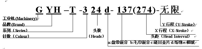 絎繡機規(guī)格型號說明: